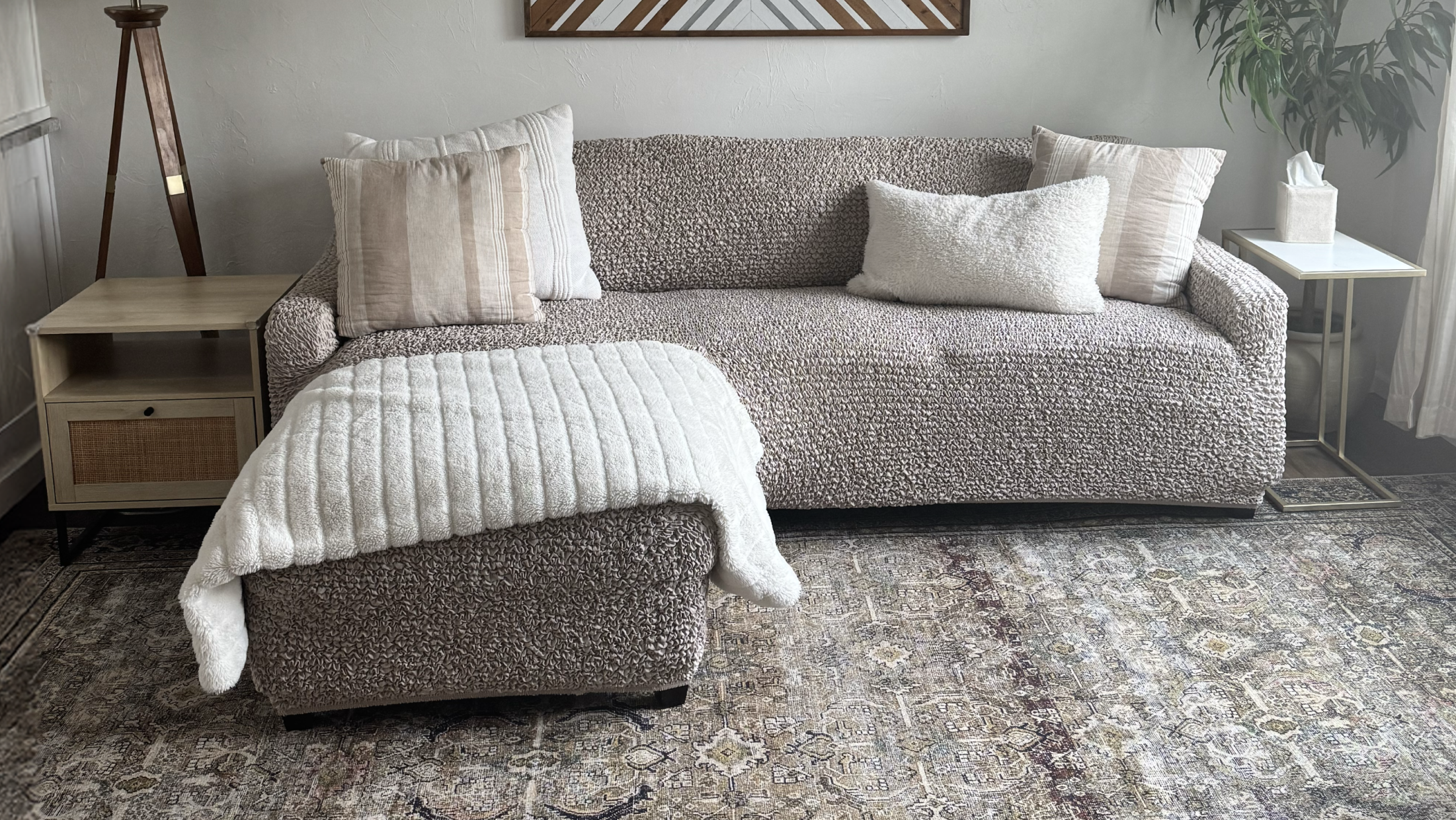 "I can be a little dramatic but not even kidding when I say this answered my prayers. I spent HOURS looking for a couch cover for my oddly-shaped, one piece sofa with chaise. I recently bought my first brand new couch ever, and shortly after I realized the fabric was rough and I hated it. My cats nails caught on the couch and it attracted pet hair like a magnet.